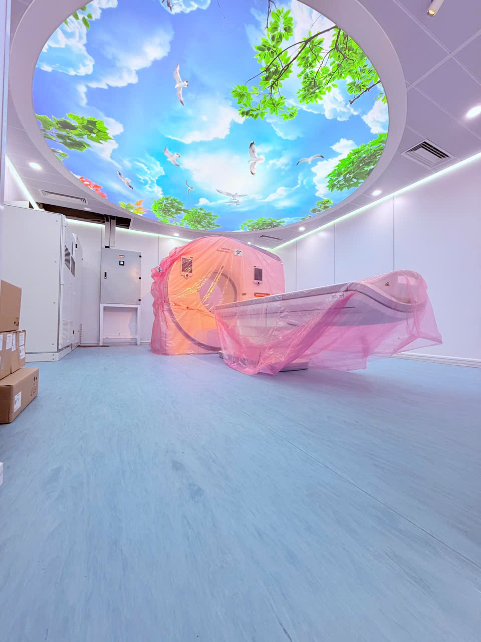 - Tường của khoa chẩn đoán hình ảnh cùng màu với bệnh viện.